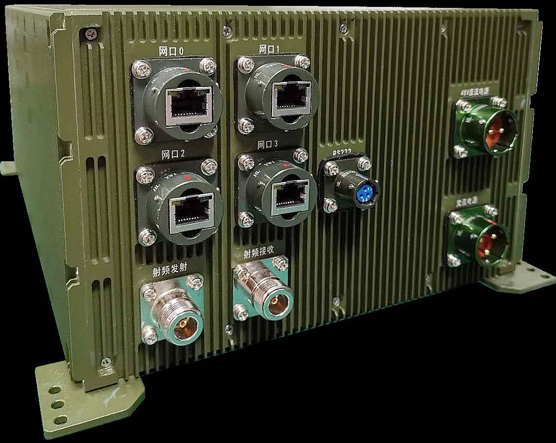 該設(shè)備實(shí)現(xiàn)多節(jié)點(diǎn)之間通過(guò)視距鏈路傳輸數(shù)據(jù),各節(jié)點(diǎn)之間具備雙向通信以及轉(zhuǎn)發(fā)的能力。上下行均包含高速通道和低速通道,分別傳輸數(shù)傳數(shù)據(jù)和遙測(cè)遙控信息。設(shè)備經(jīng)過(guò)了嚴(yán)格的環(huán)境試驗(yàn)、電磁兼容試驗(yàn),滿足GJB的相關(guān)要求;經(jīng)過(guò)掛飛試驗(yàn)驗(yàn)證,滿足實(shí)際應(yīng)用場(chǎng)景對(duì)電磁、振動(dòng)、散熱等方面的要求。